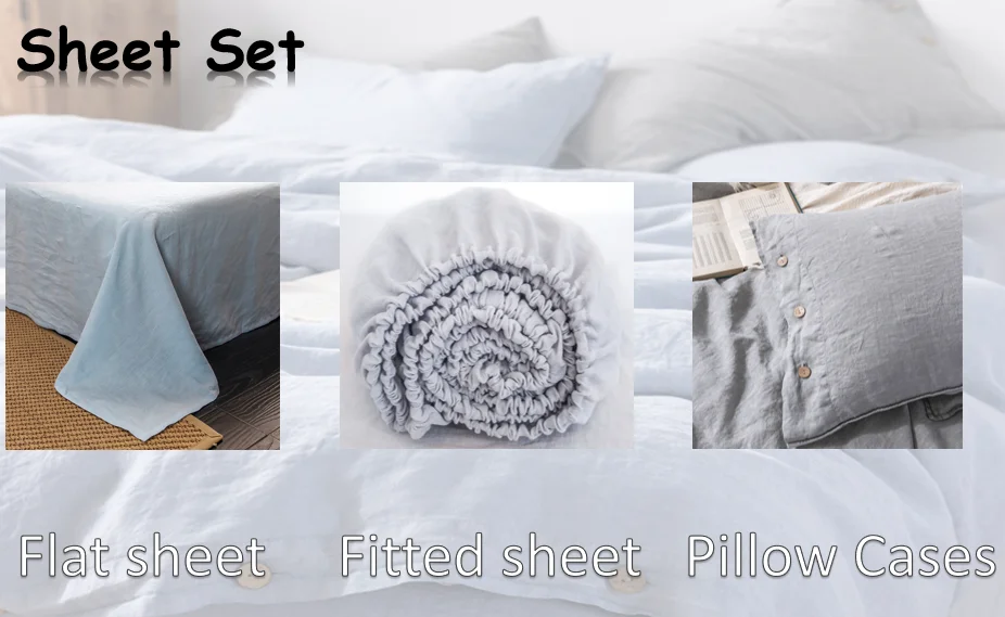• Bedding Set with Pillowcase Solid Color Fitted Sheet 300TC King Size Flat Sheet 100% organic Cotton Bed Sheets Set