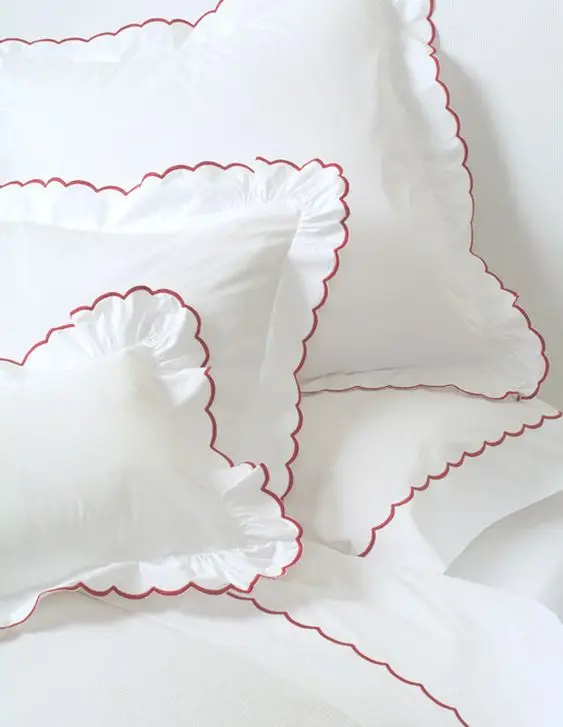 French Pure 100% Linen Scallop Edge Pillowcase Modern Decorative Pillow Ruffles Scallop Edge Cushion