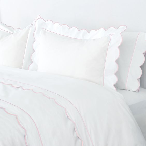 • French Pure 100% Linen Scallop Edge Pillowcase Modern Decorative Pillow Ruffles Scallop Edge Cushion